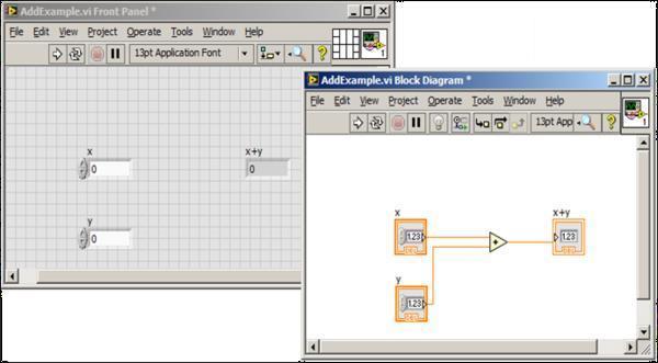 LabVIEW G programming: This is the graphical programming language where the functional algorithms are built using “drag and drop” techniques. Read more about LabVIEW programming.