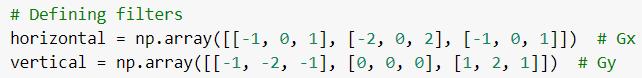 Wethenloadedtheimageandconvertedittograyscale.We then rounded the pixel values to their nearest integers, in thiscase,0sand1s.Wethenassignedvariablesh,wtothe imageâs respective height and width. And defined the Gx andGykernels.