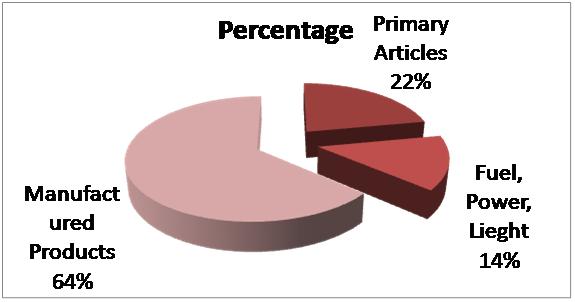 (i) Primary articles 98 (food articles 54, Non food articles 25, minerals 19) (ii) fuel, power, light weight & lubricants 19(iii)factory madeproducts 318.