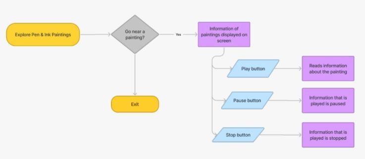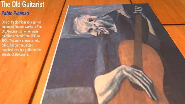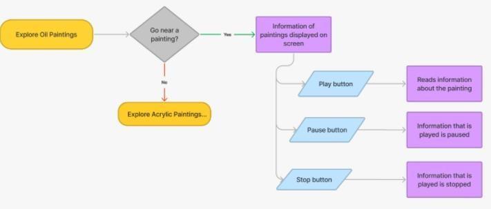 ThisisaInterfacewheretheusercanviewthe buttons below the paintings and gain the information of the above paintings. The audio will play only when the user gets close towards the paintingsandanaudiowillbeplayedinthebackgroundgivingthe informationofthatpainting.