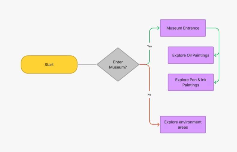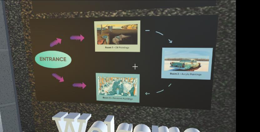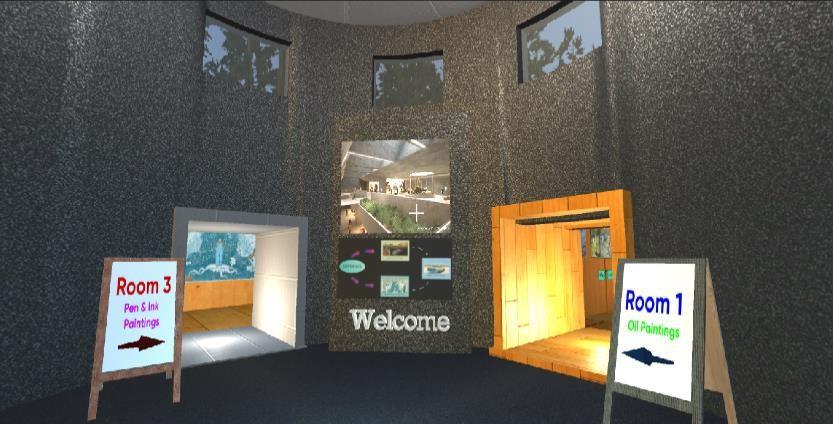 When the user enters the art gallery, itsees a welcome gate which displays instruction to the user for further decision, where to roam and which paintings to view