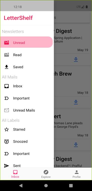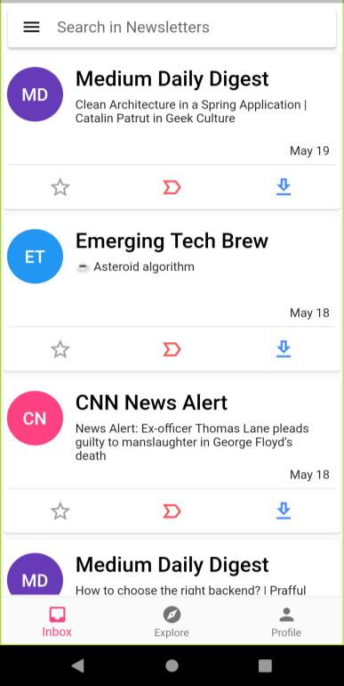 A Newsletter is a periodical, delivered to its subscribers via email. Newsletters traditionally were used for business advertisement. But nowadays, some organizations have started using them to provide daily news, insights, reviews, financial reports, etc. Although newsletters have changed, most of the users read them through their default email clients (Gmail, Outlook, etc.). Reading Newsletters from the default emails clients, can be a little frustrating, as the newsletters are mixed with other emails, and advertisements. This paper represents an app which is an email client that can be used to sort out newsletters from normal emails. It also provides a dedicated explore page, for users to explore new newsletters amongst different categories.