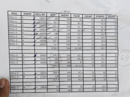 Afabricswatchof80cmfromeachrollistakenandtherepeatsizesaremeasured.Fabricrollswithrepeatsizes within3mmdifferenceareclubbedtogetherintherolllist.
