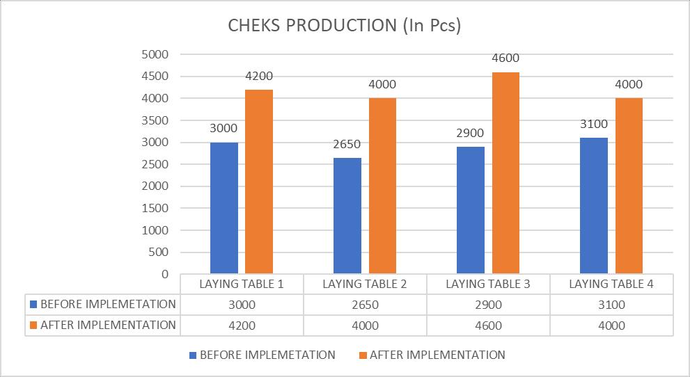 Afterimplementationofthisrepeatwisegroupingofrolls.Thefeaturelinematchingisperfectinlayswhichincreasetheready cutpercentageby20%from60%to80%.Thisimplementationisalsoafirststepforcheckedfabriccuttinginautocutter.