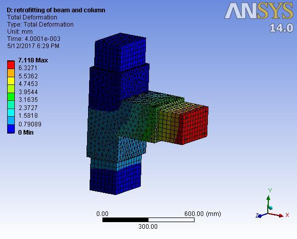 Thestructuralgeometryofexteriorbeamcolumnjointhas beenmodelledforthementioneddimensionandanalyzed using ANSYS. The exterior beam column joint has been analyzedwithoutCFRPwrapping.