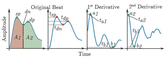 Feature Extraction Statistical,curve widths,frequency domain, and fiducial points based characteristics are also considered. To make features independent ofa user's bpm atthetimeofcapture,were samplebeatsafixedsampling rateof1,000Hzandnormalizethemsothattheamplitude valuessitinthesamerangeasthephysiologicalfeatures[0, 1]. Features are calculated on a beat by beat basis, with eachbeatresultinginasample.