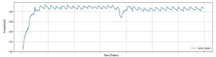 We compute the mean of the pixel wise luma component from the pixels in each video frame to get the signal from therawvideo(seefig4),sothatifFisavideocomposedby a sequence of frames {f1,...,fm}, then the signal originating fromFis: