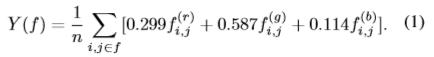 InEquation1,iandjiterateoverthepixelsoftheimageand thesuperscripts(r)indicatetheconsideredRGBchannelof theframe,eitherredgreenorblue.Thechannelcoefficients ofEquation1aretakenfromtheITU RBT.601standard.