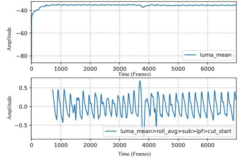 Signal Preprocessing We employ the following preprocessing methods to eliminate noise after extracting thesignalfromavideo.Toeliminatetrendsfromthesignal,