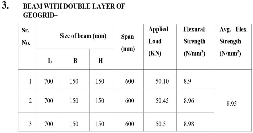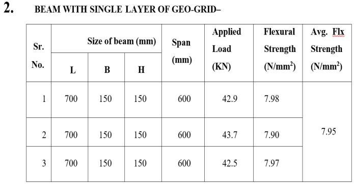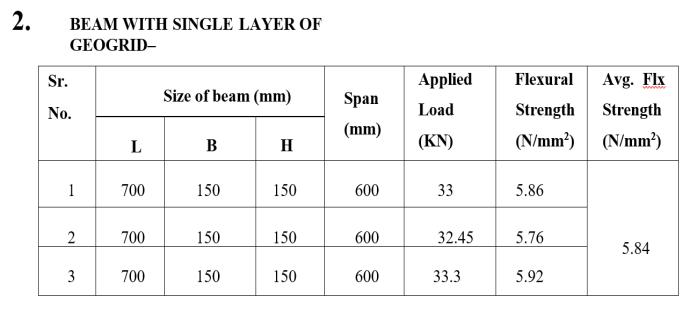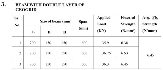 geogrid beams compare to Conventional beam can help to increase Flexural strength as per aboveresults.