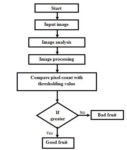 inwardand outsideabandons.Theframework comprises of six CCD cameras. Two cameras are mounted on the best, two on the right and one more two cameras mounted on the left of the natural product. X beam imaging is utilized for investigating the organic imperfections. Picture handling is utilized to break down the organic product's highlights; size, shading, shape and thegradeisresolvedinlightoftheelements.Thecreated framework is worked from a mix of cutting edge plans, master manufactures and programmed mechanical control. J. V. Frances, J. Calpe, E. Soria, M. Martinez, A. Rosado, A.J. Serrano, J. Calleja, M. Diaz [4] introduced a method to work on the presentation, regardless of whether speeding up or precision, of the heap cell based weightingsubsysteminanorganicproductarrangingand reviewing machine to accomplish an exactness of + l gram. Wong Bing Yit, Nur Badariah Ahmad Mustafa, Zaipatimah Ali, Syed Khaleel Ahmed, Zainul Abidin Md Sharrif [5] proposed new MMS based framework plan and created with signal handling for natural product evaluating for customers. The model organization engineering,joiningofremoteinformingframeworkwith signal handling between versatile customers for improvement objects was considered, proposed and planned..