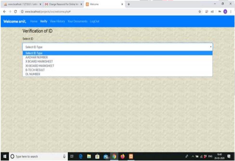 Aftersuccessfulregistration,thesystemwillshowtypeofdocumentandusercanselectthedocumentfromthe givenoption andthencansuccessfullyuploaditonthesystemandafterthatsystemwillverifythatdocument.Fig.3.showstheDocument verificationprocess.
