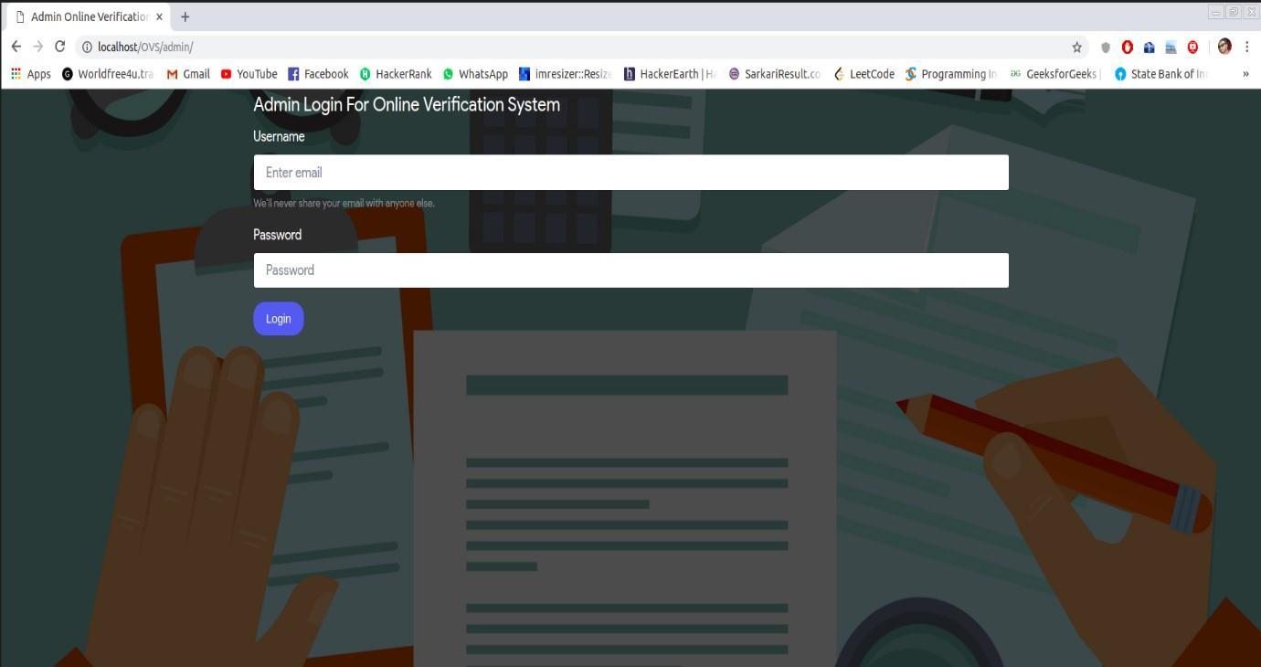 Thisistheadminfrontpagewhichwill beusedforonlineverificationofdocument.Itcontainsregistrationpage forthe newuserandloginpagefortheexistinguser.