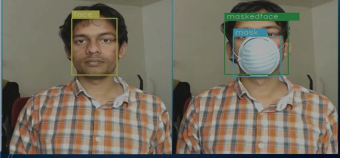 Object identification techniques using deep learning techniqueshavepotentiallybecomemuchmoreefficientin solving challenging tasks in recent years when compared to shallow models [10]. Developing a real time system/model capable of recognising whether persons haveworna mask ornotinpublicplacesisoneoftheuse cases.