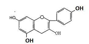 (Figure14):Thestructureofkampherol Flavanones are characterized by the absence of the double bond located between C2 and C3. Flavanones can be dehydrogenated to yield flavones or undergo hydroxylationatposition 3toyielddihydroflavonols(3 hydroxyf1avanones); an example of flavanone is naringenin(Figure15)6