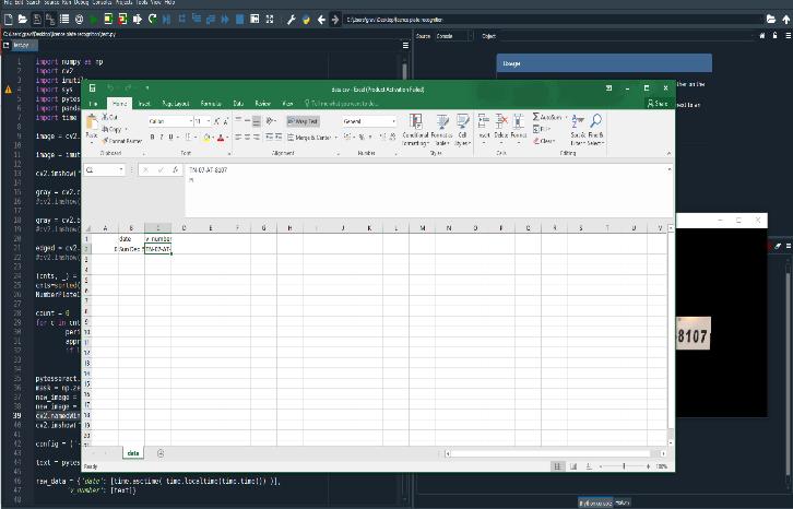 df = pd.DataFrame(raw_data, columns = ['date', 'v_number']) df.to_csv('data.csv') print(text) cv2.waitKey(0)