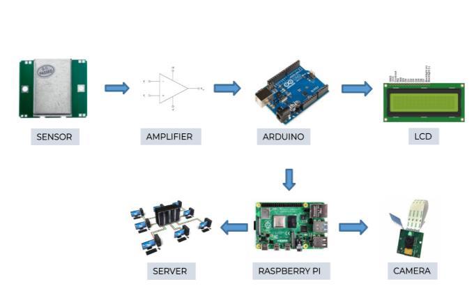 The block diagram of the system consists of HB100 device senses the moving vehicle and produces sine signalthatisthenamplifiedbyelectronicequipment. TheoutputisfedtothedigitalpinoftheArduino.The microcontroller measures the frequency of the input and calculates the speed of the vehicle from the worthoffrequency.