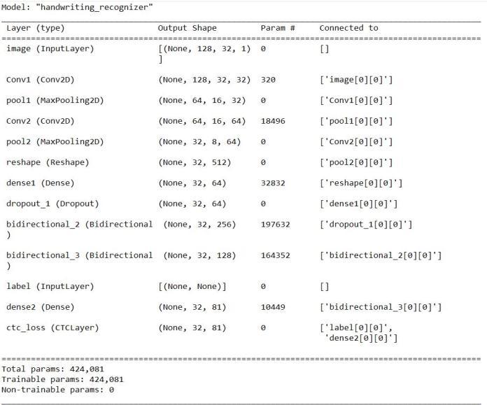 In recent years great advances in deep learning andcomputer vision have allowed improvements on document and image processing including HTR. Handwritten text recognitionplays an important role in the processing of vital information. Processing of digital files is cheaper than processing traditional paper files even though a lot of information is available on paper.