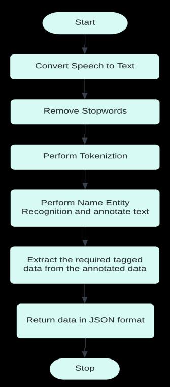 The recorded voice from the doctor is converted into speech by the Google Speech to Text API. The text is extractedbyusingNLTKtopreprocessthetext,andfinally performing Named Entity Recognition on the preprocessed data. NER is performed by using the StanfordNERpackage.