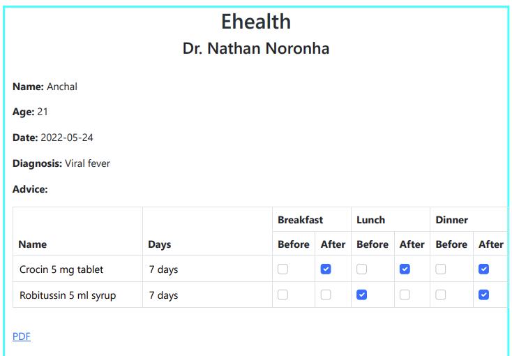 The main aim of the project was to solve the problem of illegible handwritten prescriptions and provide an interface for the patients and doctors to get in touch with each other. The implemented system overcomes these
