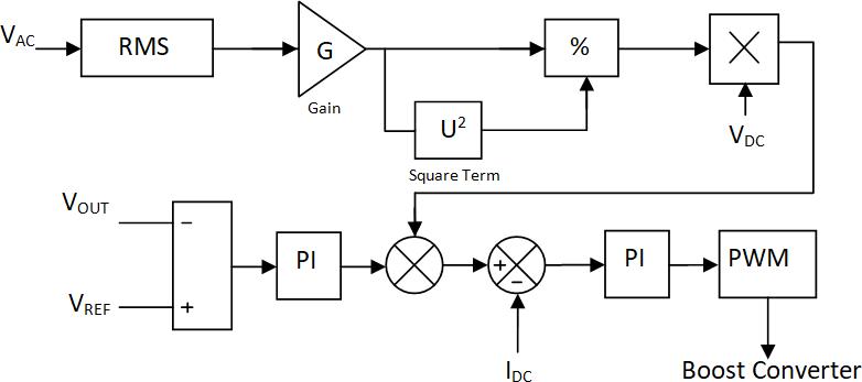 WeneedtodetectpeakvalueofACinputvoltageinordertogeneratesinusoidalreferenceforthecurrentcontroller.Then we have voltage regulator to control voltage which isfollowed by the current controller. It controls inductorcurrent and also maintains sinusoidal wave shape and finally the output is given to the PWM block which is connected to the gate terminaloftheMOSFET