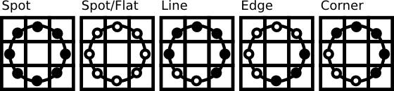 Thisdefinitionhelpsyouto captureanimagewith very fine grained descriptions. The authors were able to compete for texture classification with state of the art tests.Itwasnotedsoonaftertheoperatorwaswrittenthat a fixed neighbourhood fails to encode information that variesinsize.Therefore,theoperatorhasbeengeneralized in[AHP04]touseavariableneighbourhood. The idea istomatchanarbitrarynumberofnearestneighbourswith a variable radius on a circle, which allows the following neighbourhoodstobecaptured: