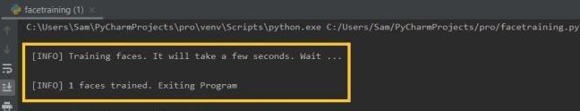 Once the face dataset module is initialized, the Haarcascadetrainerwillgetusedtotrainingourmodel.