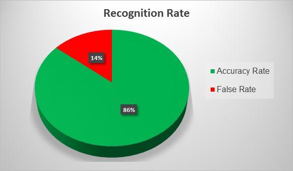 The pie chart for the recognition rate (Fig. 12) is the representation of the average the recognition accuracy ratefromTable1.