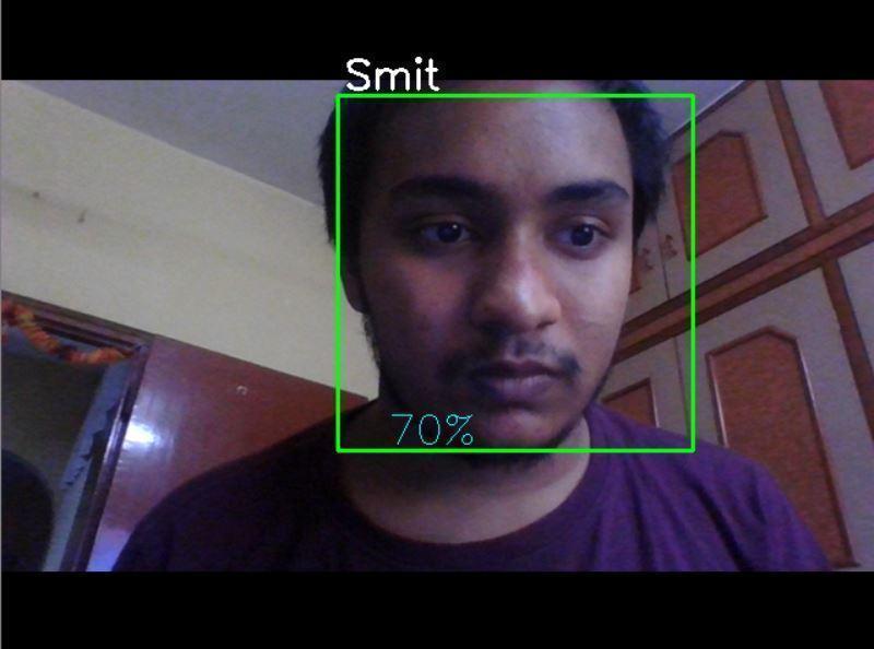 In the recognition accuracy figure (Fig. 10), after using the given face dataset, gathered from the uploaded video and trained dataset file, we got the recognition accuracy of 70% from the webcam. The recognition accuracywillincreaseforhigherqualitycameras.