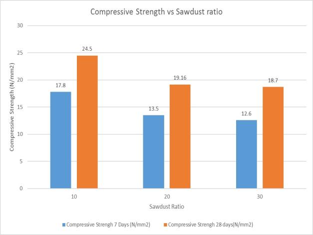 Sawdust Ratio(%) Compressive strength7days N/mm2