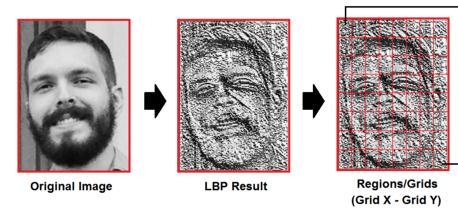 5. At last, performing the recognition of face: Since the algorithm has already been trained in the previous steps. Everydistinguishedhistogramthatiscreatedisusedinthe representation of each image from the training dataset. Similarlyforeverynewimageweperformthesamesteps.