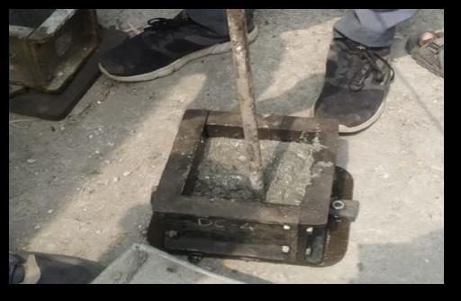 Compaction is done with tamping bar of dimension of diameter 16mm and height of 0.6m. Compacting is done with min 35 strokes in all parts of mould for proper compaction.