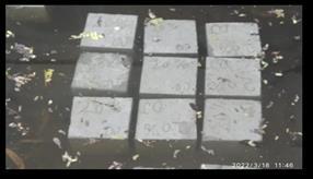 Thenthespecimenisstored inmoistairfor24hours. Then blocksareremovedfromthespecimeniskeptsubmergedin clearfreshwaterforduringfor3days,7days,28days.