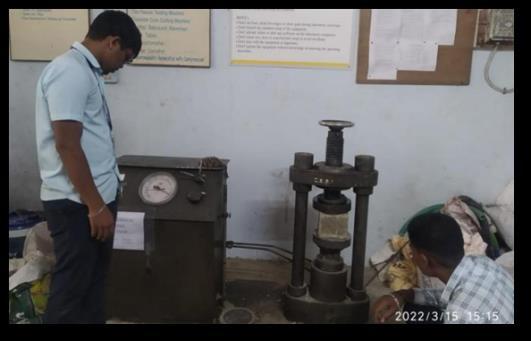 It is the characteristics strength of concrete. It is the ability of concrete to resist load without any failure like crack or deflection Usually, a compressive testing machine (CTM) is used to perform compressive strength on concrete block. After air drying the concrete block, the strength must have tobeknownforthemoreapplicationoftheconcreteblocks. Fig. 15. Sieveanalysis