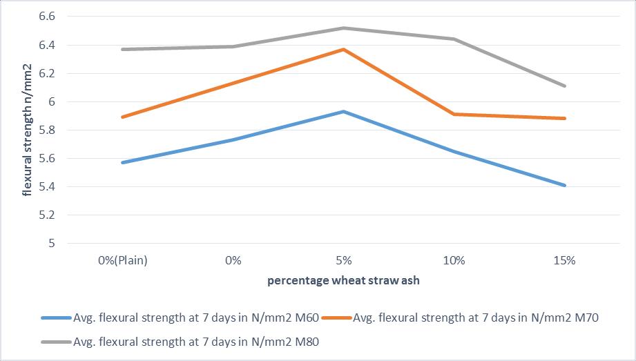Fig. 5: Variationofflexuralstrength(7daysinN/mm2) withdifferentpercentageofwheatstrawash