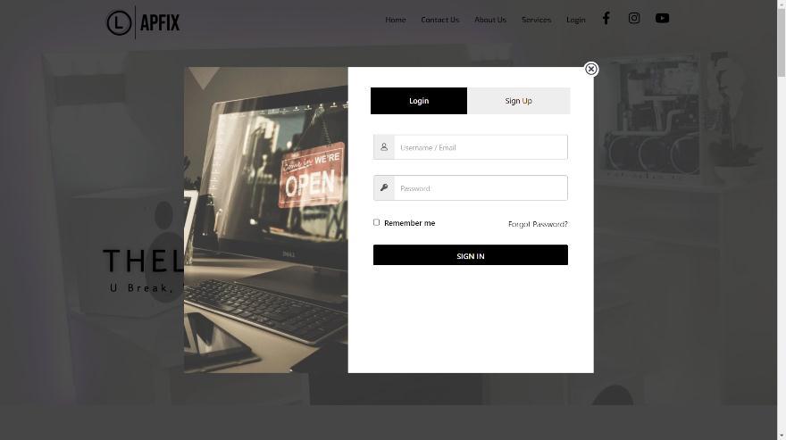 THELAPFIX website have facility to login/signup for user. User/customer have to make an account to avail servicesofthewebsite.