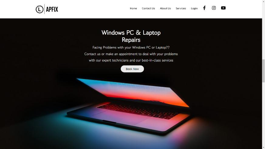 The home page is major page of THELAPFIX website as it consists major sections like Our services, three informativesections i.e., windows pc/laptoprepair section, statssectionanddelivery sectionandthenthereis testimonialsection.
