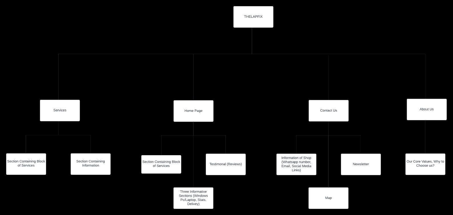 Asyoucanseeintheabove mentionedflowchartofTHELAPFIXwebsite,thereare4majorpagesi.e.,HomePage, ServicesPage,ContactusPageandAboutusPage.