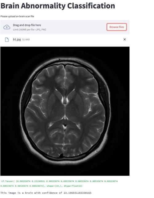 Fig. 11. The Web App characteristicsto ourmodel. Our final model yielded an accuracy of 92.31%. In orderto showcase ourmodel andits working, wewerealsoabletosuccessfullydevelopafullymanagedweb apptoclassifybrainimagesandabnormalitiesasitcanbeseen intheimagebelow: