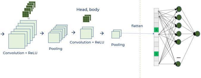 Thedifferentpartsoftheimagesgettrainedthroughthe combinationoftheabovelayers.Themodellearnsthe entireobject image when an aggregated form of already learned partitions passes the layers again. The CNN model functions through multiplesetsofConvolutionalfilters,Activationfunctions,andPoolingLayers.