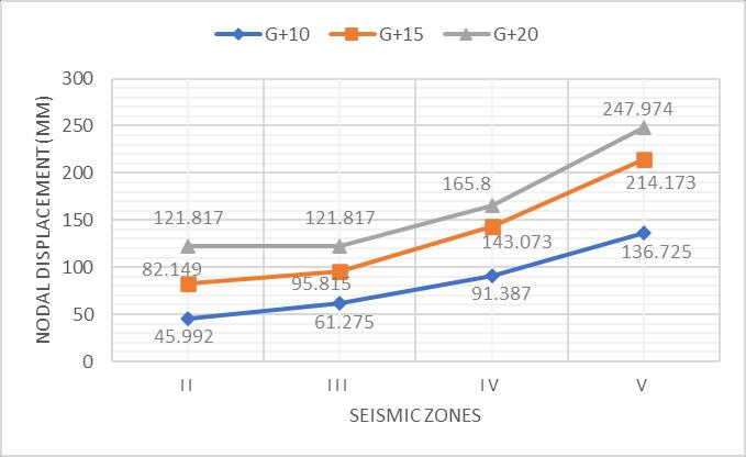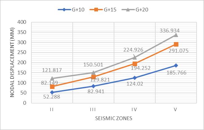 Chart 1:Variationofmaximumnodaldisplacements withseismiczonesfordifferentstorey