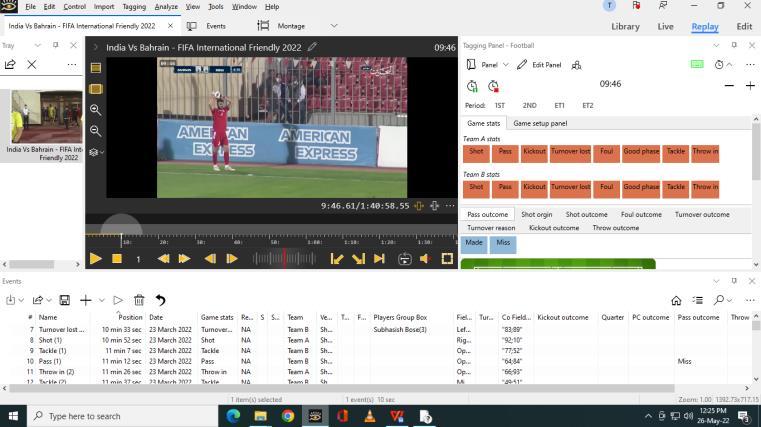To get the event data in excel and short videos using the tagging panel, I have selected the friendly matchesthatwereheldwithBahrainandBelaruson23rd March 2022 and 26 March 2022 respectively. With these above matches, our team players could not perform well andtheyfailedtosucceedinthematches.
