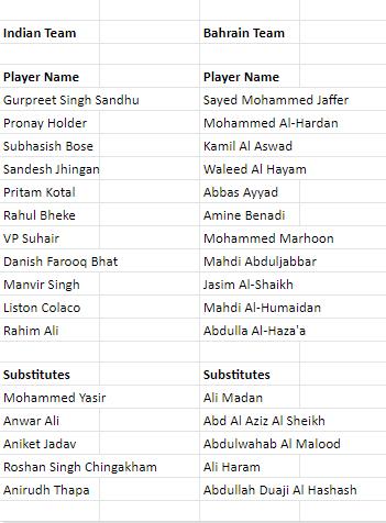 4.2 List of players in India Vs Bahrain match on 23 March 2022