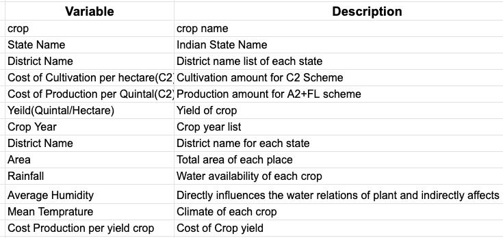 The insightful interaction began from information cleaning and handling, missing worth, exploratory investigation lastly model structure and assessment. At long last we foresee the yield utilizing AI calculation with various outcomes. This brings a portion of the accompanying experiences about crop forecast. As greatest kinds of yields will