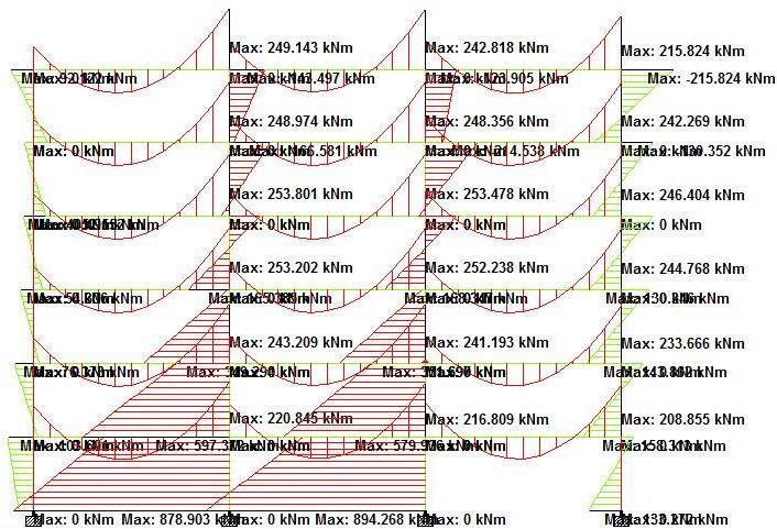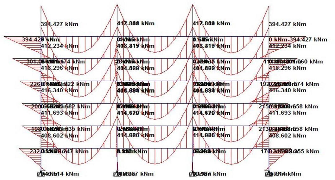 Fig (6.3) Bending moment diagram for load combination 1.3(DL+LL+EQ)