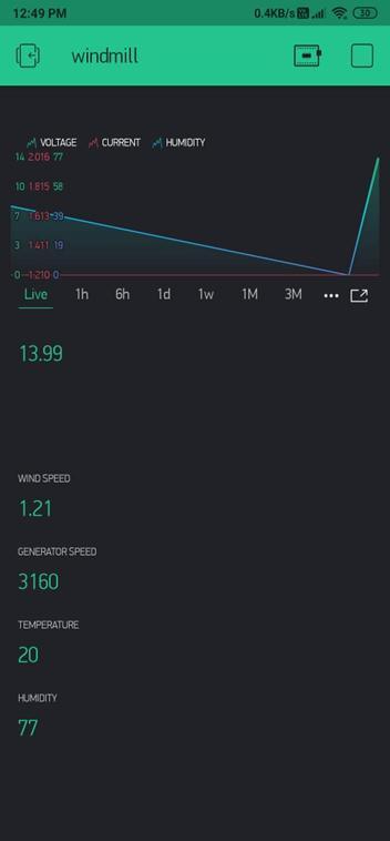 Abstract There has been a rise in renewable energy demands and windmills are commonly used. Production costs have fallen, but operating and maintenance costs haven't. It's difficult to operate and maintain windmills in remote areas with human intervention every day, as humans are susceptible to making mistakes.[2] Designing a data acquisition system based on the Internet of Things can collect data and monitor windmills from anywhere, alerting the individual if necessary. The analog data is converted into digital data by sensors and is fed to an Arduino controller. Depending on the data the controller responds to, the live data from the sensors are visualized directly on a dashboard for remote monitoring. Users can monitor live energy, voltage, current, and other measurements for every windmill on their dashboard. There are several measurements that are monitored, which can be visualized for each windmill.