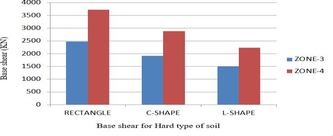 Base shear: Thefollowingtableshowsthevalueofbaseshear in hard, medium soil and zone 3, zone 4. The values of base shear in the X and Z direction are the same as per software output.
