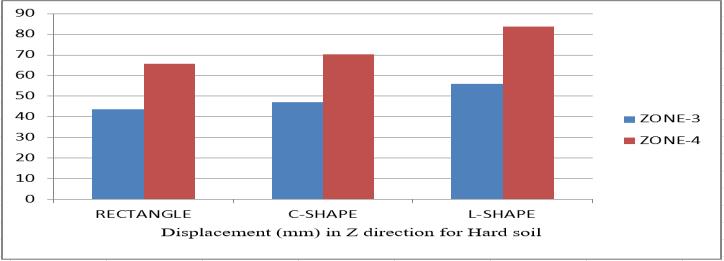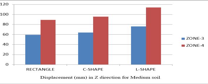 4. Given the solid soil, the more stable or minimal displacement of the shape of the building is a rectangle and maximum displacement in an L shaped building. Andalsothesameformediumsoil.