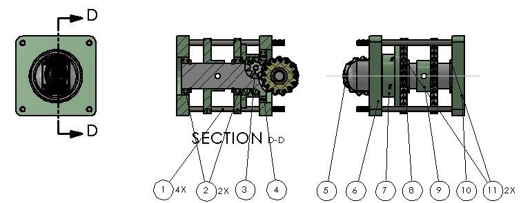 Thismechanismconsistof2drivingmodulesandcross spherical gear, first module driving module. The driving module contain an innovative gear called monopole gear itsdimensionillustratedinthefollowingfigures.