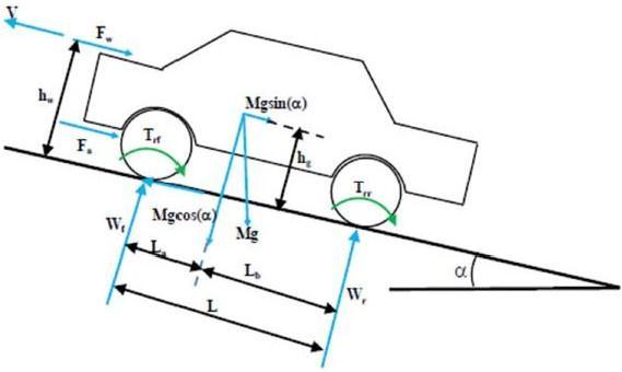 5.TractiveeffortofthefrontandreartiresFfandFr(Fora rear wheel drivevehicle,Ff=0,whereasforafront wheel vehicle,Fr=0).